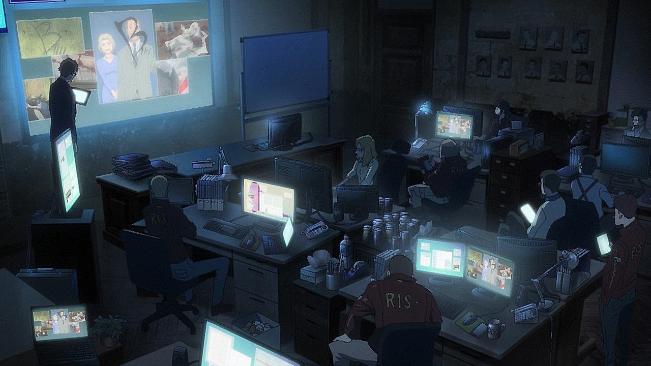 La particularité de B The Beginning c’est que pour le prix d’une série vous en avez deux. D’un côté il y a la série policière, fortement inspirée des séries US comme mentionné plus haut. L’équipe de flics aux personnalités stéréotypées, menée par un détective taciturne mais plus malin que les autres, c’est exactement la recette de tous les feuilletons à succès du genre NCIS, Les Experts Miami, Mentalist etc. Cette inspiration se retrouve dans la mise en scène, avec cette technique qui consiste à afficher du texte à l’écran en synchronisation avec les déductions du personnage exactement comme dans Sherlock. On retrouve également cette fascination américaine pour la violence et la folie meurtrière, l’anime étant très sanglant et multipliant les séquences morbides. Clairement l’idée était de reprendre la base des séries US pour plaire au public US, mais ça ne leur pas suffi.