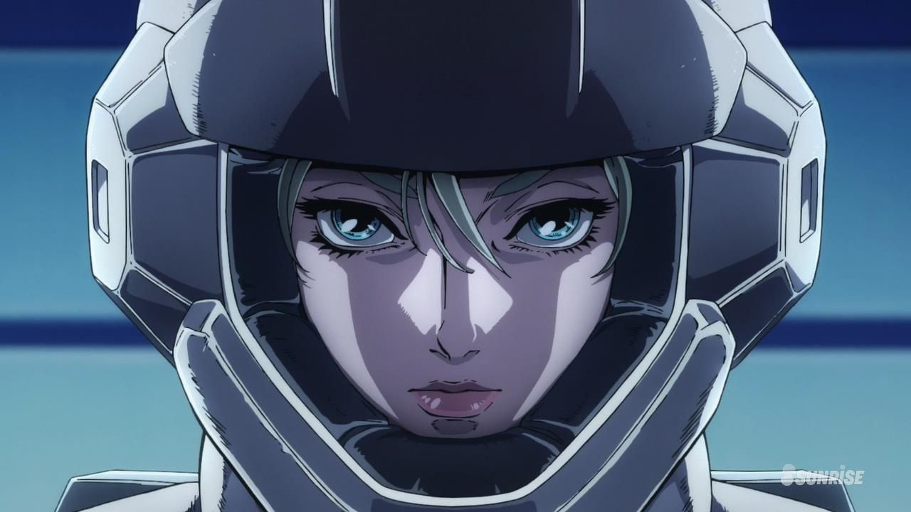 Commençons par ce qui saute aux yeux ; la direction artistique de cette série est fabuleuse. Le studio Sunrise prouve une nouvelle fois sa maîtrise totale de la question du robot géant, et démontre qu’il leur est tout à fait possible de créer de vrais morceaux d’animation japonaise si tant est qu’on leur en laisse la possibilité. Le chara-design détaillé et son aspect crayonné rappelle les standards de la bande-dessinée européenne, et les mechas comme les vaisseaux sont bien évidemment animés à la main, avec parfois de vrais petits exploits techniques comme cette déjà fameuse séquence en vue subjective dans le premier épisode. Le jeu des lumières et des couleurs est également très recherché, contribuant à créer l’ambiance enténébrée et mélancolique d’un film noir. Qu’il soit possible qu’en 2015-2016 il reste au Japon des gens capables de mettre en forme ce genre d’anime est sidérant lorsque l’on voit l’état de fadeur de la plupart des animes produits de nos jours.