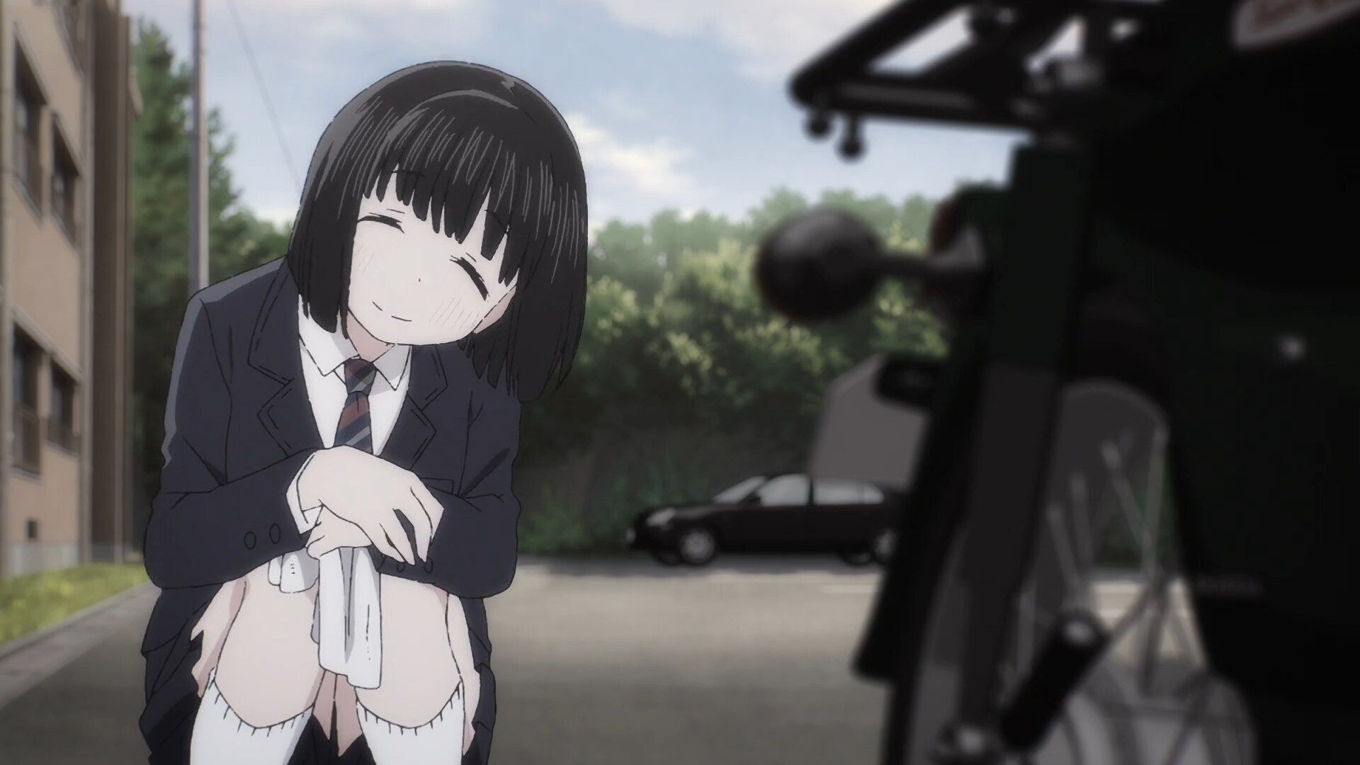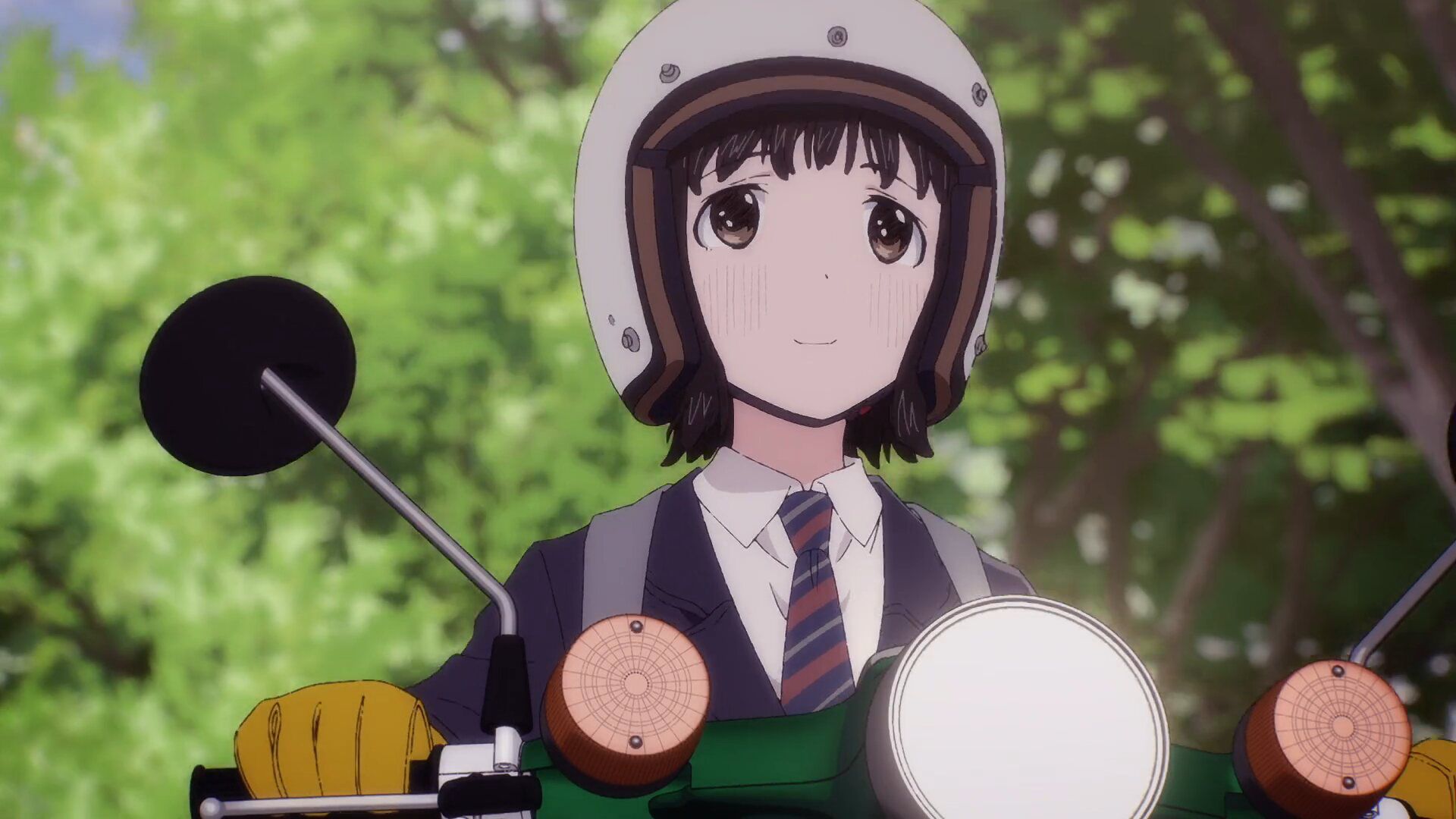 Un jour, elle en marre d’aller à l’école à vélo et pense à investir son argent dans un cyclomoteur. Ainsi, le Super Cub entre en scène et elle l’améliorera en fonction de ses besoins. Son quotidien terne et sans but évolue grâce à lui. Alors, ce n’est pas pour autant qu’elle change de personnalité mais ces sourires qu’elle lâche de temps en temps valent leur pesant d’or (pour les adorateurs de mignonneries).