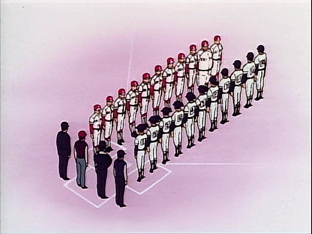 C’est sur l’aspect technique que les choses sont moins chaleureuses. Cette adaptation de Nine est sommaire aussi bien en termes de quantité que de qualité, avec une mise en scène qui relate les évènements sans les souligner outre mesure. On se moque souvent de l’exagération dans les séries sportives des années 80 telles que Captain Tsubasa par exemple (dont la diffusion a débuté en 1983 soit la même année que Nine) mais c’est justement cette stylisation qui a permis à ces séries de passer à la postérité. La cinématographie de Nine se compose en majorité de plans serrés sur les personnages, les plans plus larges étant principalement remplis de blanc, au sens littéral du terme, comme si le mec responsable des décors avait posés ses congés au moment de la production. Il est à noter que le réalisateur n’est pas n’importe qui puisqu’il s’agit de M. Gisaburo Sugii, qui en plus de Nine a également réalisé les susmentionnés Touch et Hiatari Ryoko, mais qui est aussi connu comme un habitué des adaptations de Tezuka avec Dororo et Hidamari no Ki entre autres. Vu le pedigree du bonhomme je ne peux pas croire qu’il ait fait du travail bâclé, on va donc plutôt dire que Nine a un « style dépouillé » qui choisit de rester fidèle au trait d’Adachi… Ouais, ça marche aussi comme interprétation.