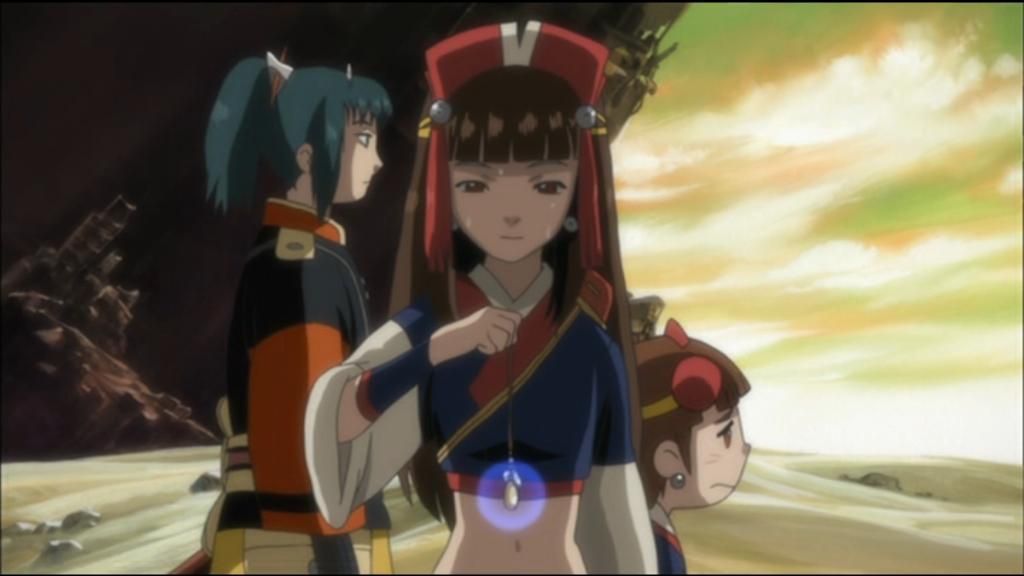 Commençons par ce qui saute aux yeux : la qualité de la réalisation. Dès les premières minutes, on assiste à une bataille en plein ciel à grands renforts de CGI. Le reste est à l'avenant. Gonzo a consacré 300 000$ par épisode pour cette série. C'est le double de la norme en la matière. La série est d'ailleurs la première à avoir été produite en HD. Et si je n'ai pas l'équipement qui va bien pour en jouir pleinement, on apprécie les détails. En effet, chaque décor est riche, on a pas droit à trois textures qui se courent après. Chaque lieu a son identité propre mais un détail qu'on remarque très vite est le choix de couleurs froides pour les décors, du gris au vert. En fait, ce choix est plutôt bien venu pour mettre en valeur les personnages, aux vêtements colorées.