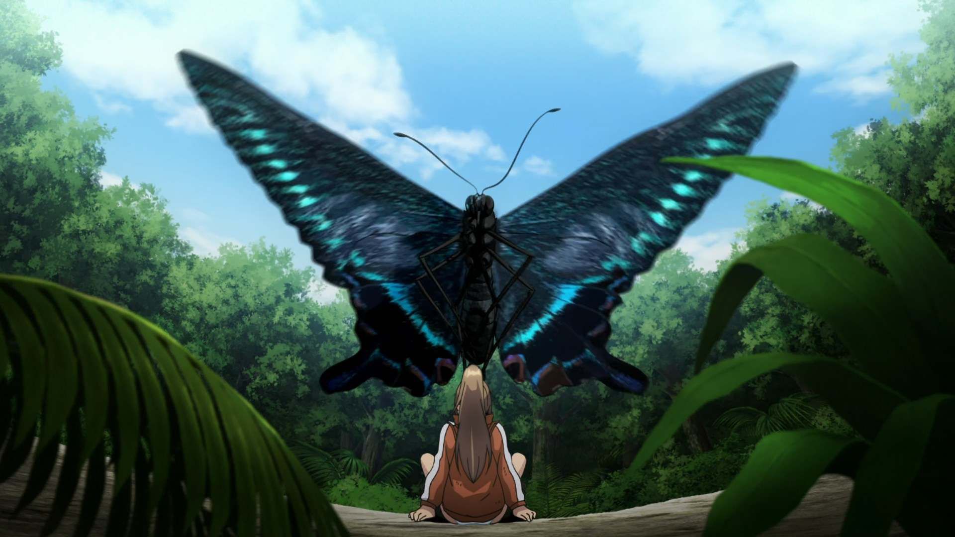 Parmi les rescapés se trouve Oribe, une jeune fille qui se trouve être passionnée d’entomologie et possède donc des connaissances étendues sur le comportement des insectes ; ce qui tombe vachement bien quand on coincé sur une île peuplée d’insectes géants, vraiment bravo au scénariste quoi, il a tout prévu. Grâce à sa science encyclopédique, Oribe parvient à guider ses compagnons d’infortune vers la survie ; mais c’est sans compter sur la dangerosité grandissante des bêtes, tout comme la duplicité des hommes. Car finalement, le pire monstre, c’est l’homme… (musique dramatique).