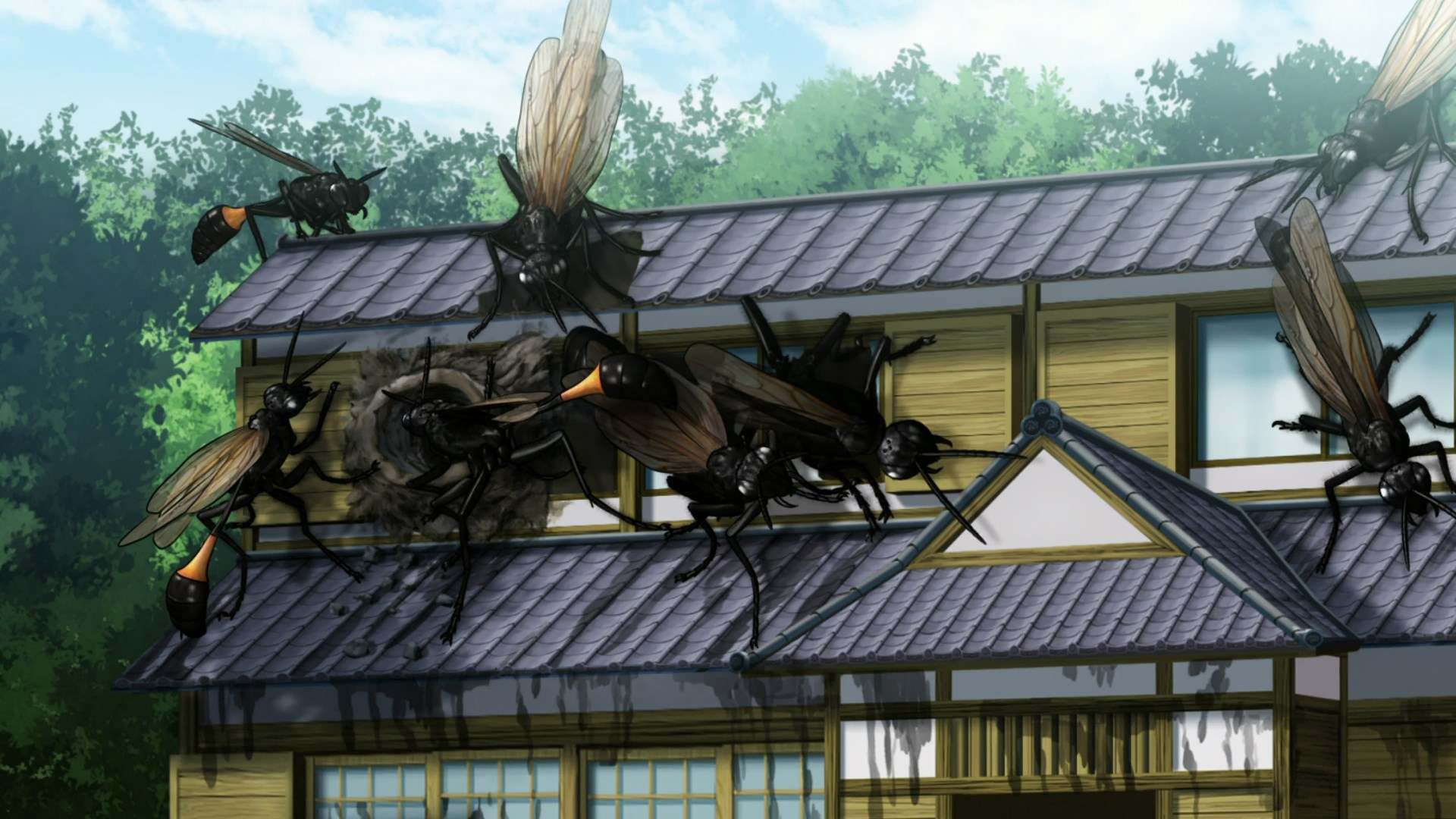 À la suite du crash de leur avion, un groupe de jeunes japonais se retrouve isolé sur un île perdue au milieu de l’océan. L’île est habitée, mais les résidents semblent avoir disparu et bien évidemment toute communication vers l’extérieur est impossible. Bien vite nos héros découvrent la cause de ce chaos ; de gigantesques bestioles ont pris possession des lieux et se font fort de transformer tout survivant humain en repas à emporter.