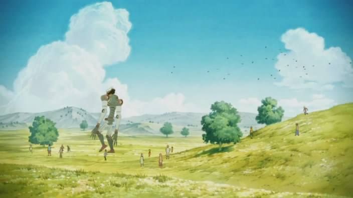 -Michael Arias (Studio 4°C) : une sorte de robot évolue dans un paysage champêtre en présence de nombreux enfants.