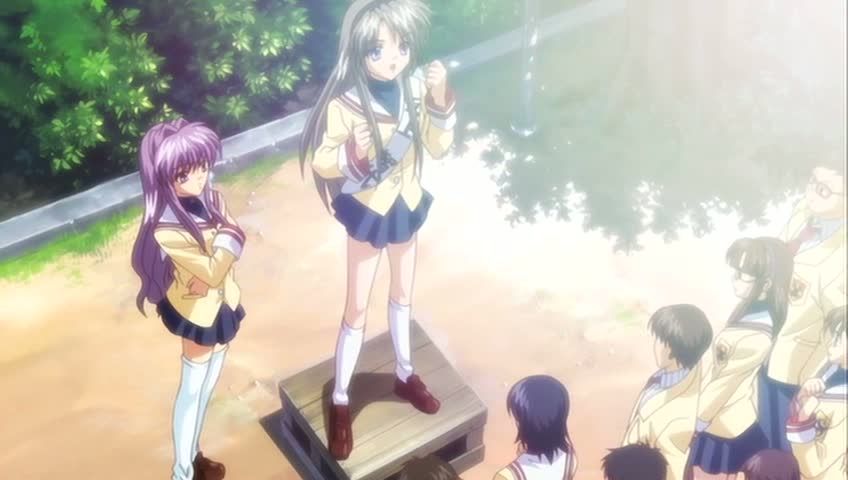 Plus rien n'intéresse Okazaki Tomoya, jeune lycéen partagé entre une vie scolaire monotone et un foyer inhospitalier, jusqu'au jour où il fait la connaissance de Nagisa Furukawa. Touché par sa naïveté et son côté imprévisible, il décide de l'aider à concrétiser son projet. Ils rencontreront alors des filles toutes plus étranges les unes que les autres avec lesquelles ils se lieront d'amitié.