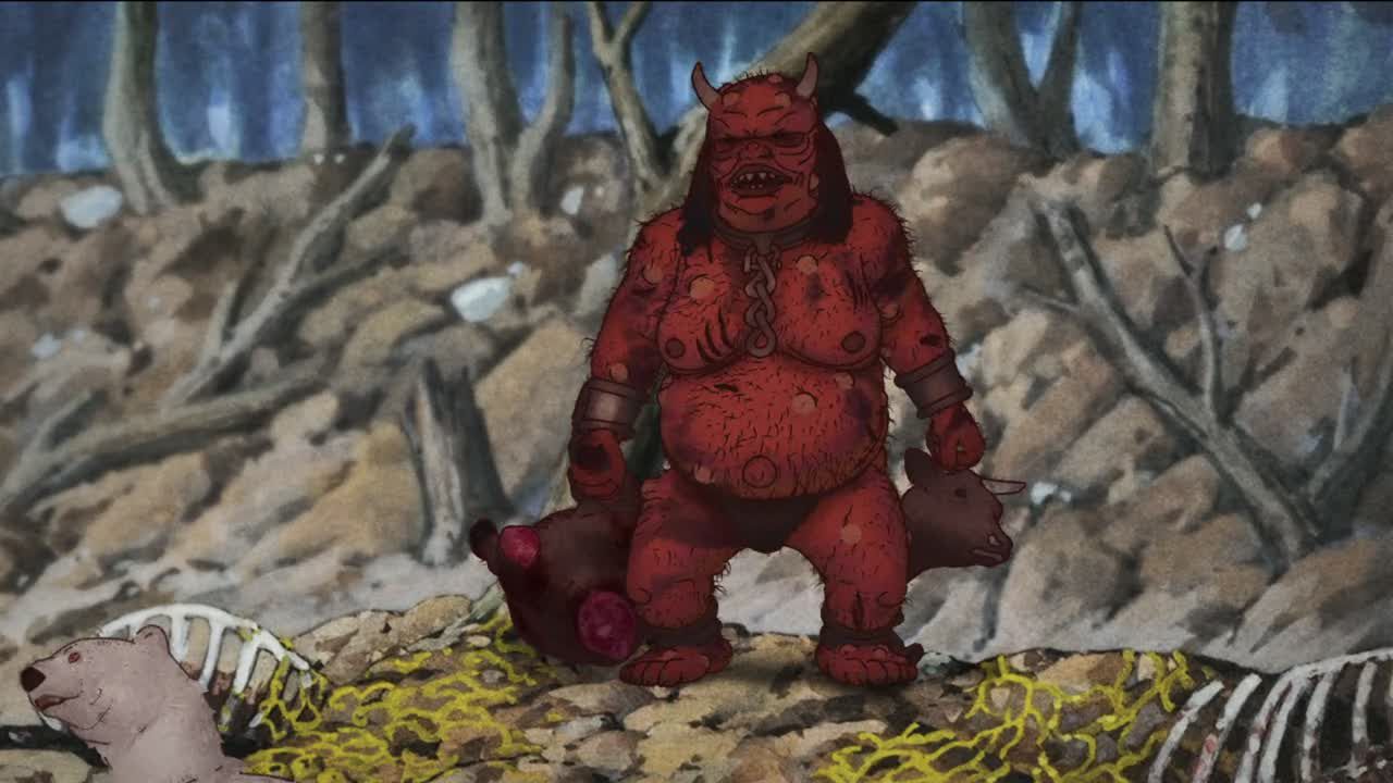 Un Oni tombé du ciel réclame des femmes en tant que tribut aux villages à proximité. Une enfant qui doit lui être offerte, Kao, rencontre alors un ours blanc, Gambo, et lui demande de l'aide.
