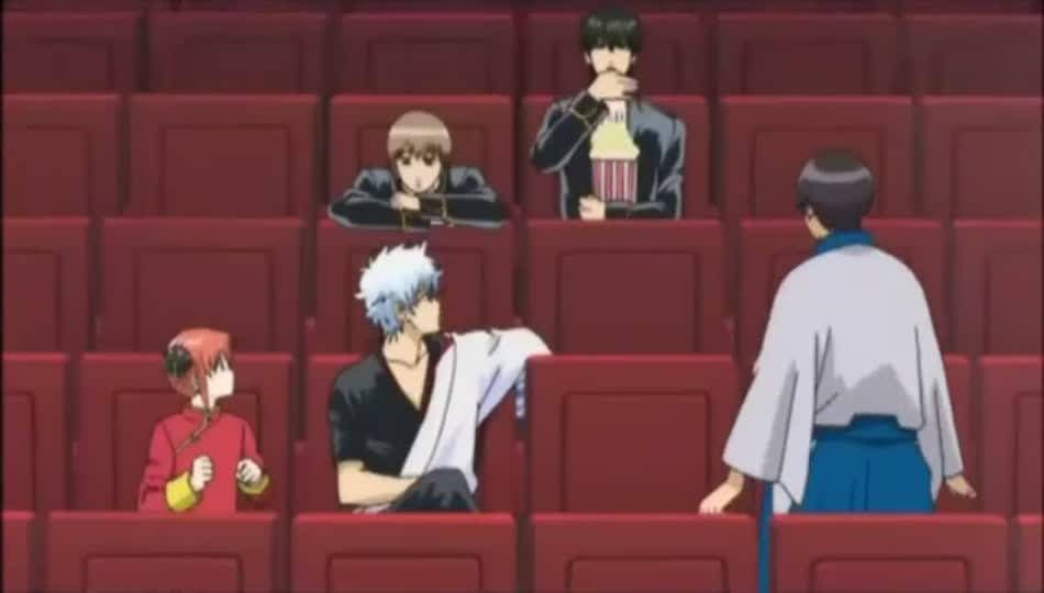 Mais n'oubliez pas que nous parlons d'un OAV de Gintama : c'est évidemment un faux. Nos héros ne réussiront jamais à rester assez sérieux pour produire un film aussi ronflant et la projection va évidemment partir en cacahuètes.