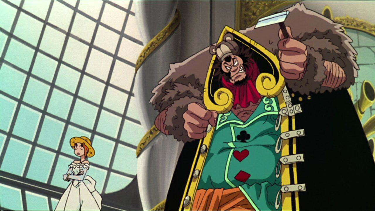 Alors que tout l'équipage de Luffy se repose sur la plage, le Vogue Merry est volé ! Ils se lancent à la poursuite du bateau en mer et se font capturer par les frères Burodo mais sont immédiatement attaqués par les frères Card qui enlèvent Nami. Ils comptent l'offrir à leur chef, Bear King, dont la base est sur l'île horloge où serait aussi le Vogue Merry.