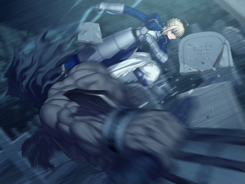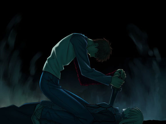 Il faut noter aussi que c’est à cause de cela que la série « Fate Stay Night » est souvent prise (et donc pas sans raisons) pour rien de plus qu’un simple shonen au héros naïf et agaçant. En effet, le scénario qu’elle adapte a justement vocation à cela, mais n’a en fait que peu d’intérêt s’il n’est pas confronté au deux autres. Adapter ce scénario était donc selon moi un mauvais calcul de la part du réalisateur YAMAGUCHI Yuji, bien que compréhensible puisqu’il représente aussi « l’introduction » de Fate Stay Night. Pour en revenir au jeu, tout se corse à partir du deuxième scénario, Unlimited Blade Works. En effet c’est dans ce scénario que Shirou va se retrouver confronté à Archer, c’est-à-dire à un « lui-même » ayant constaté l’impossibilité de son idéal et les peines que celui-ci lui causera tôt ou tard s’il s’obstine dans cette voie.